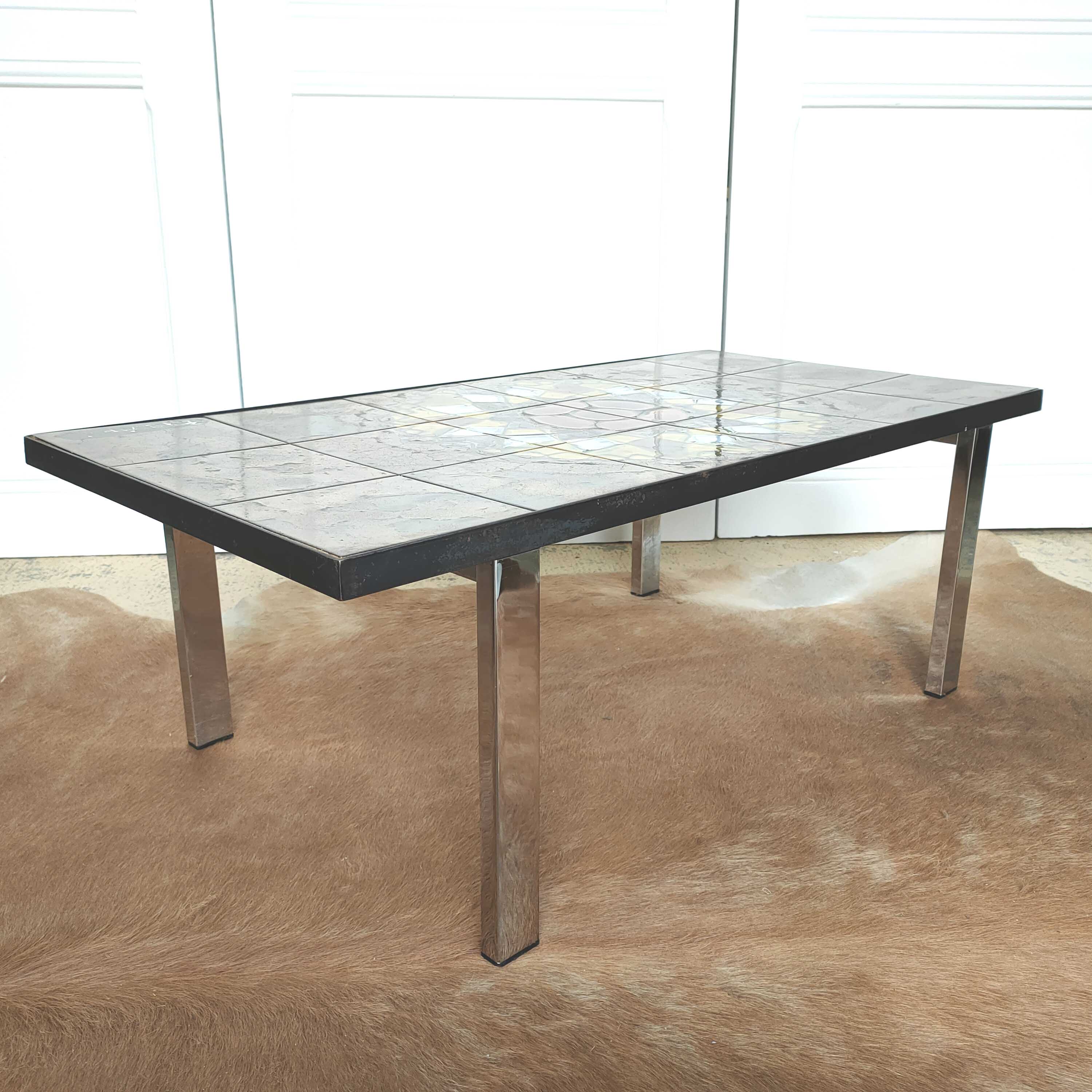 Coffee tables were originally used in living spaces during social gatherings to support a tray containing multiple mugs, a coffee pot, creamers and sugar bowls.